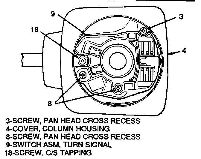 Position turn signal switch (9) so that turn signal switch screws (8) and housing cover screw (3) can be removed through openings in switch.