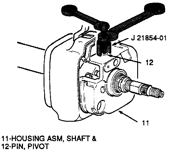 ^ Two pivot pins (12) until flush with shaft and housing assembly (11).