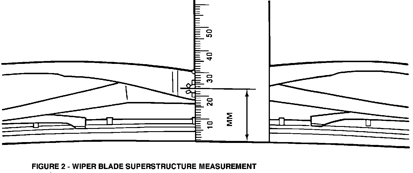 If dimension is less than 22 mm (0.87 in.) replace wiper blade superstructure with GM P/N 5049731.