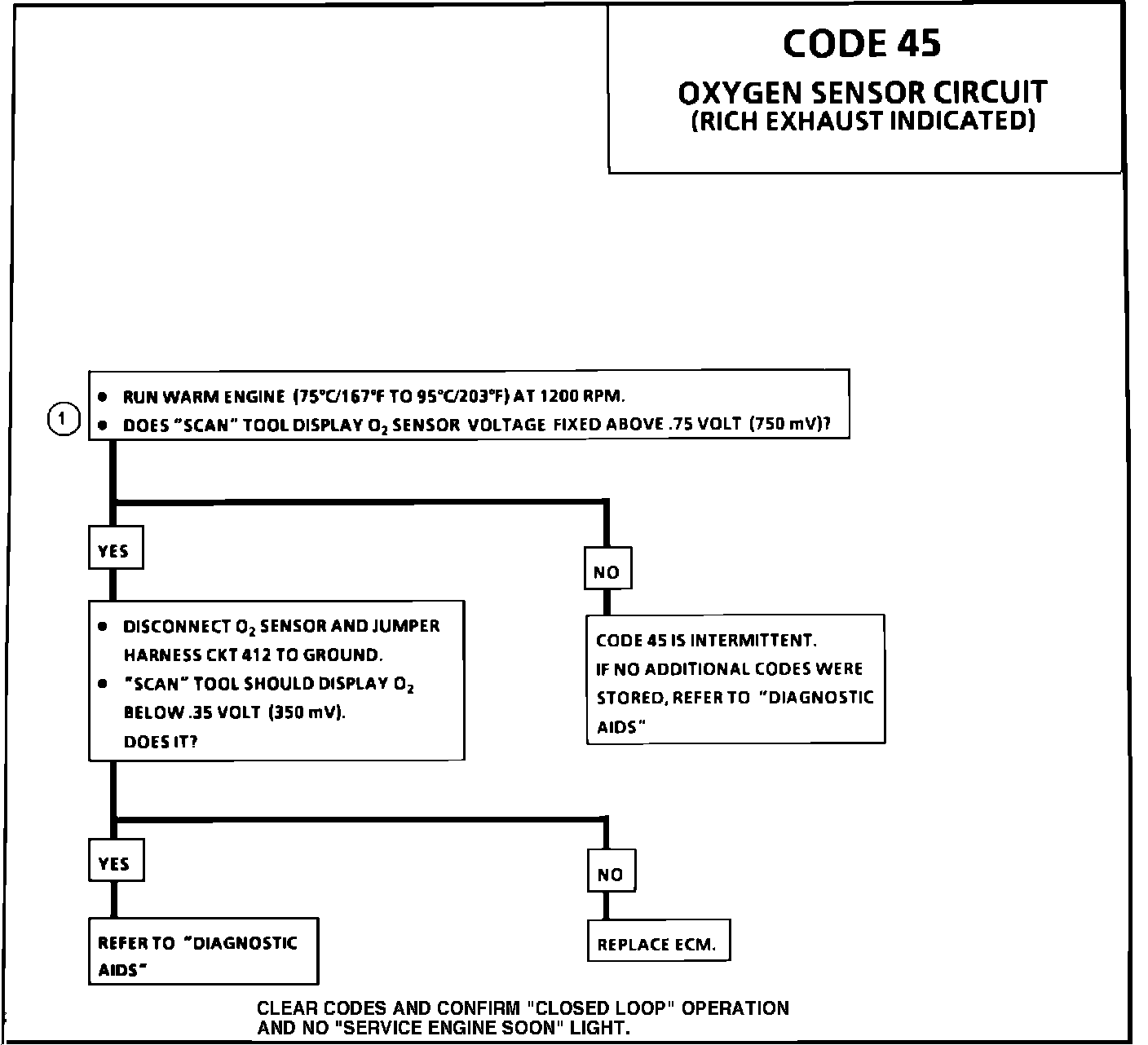 1. Code 45 is set when the O2 sensor signal voltage or CKT 412: