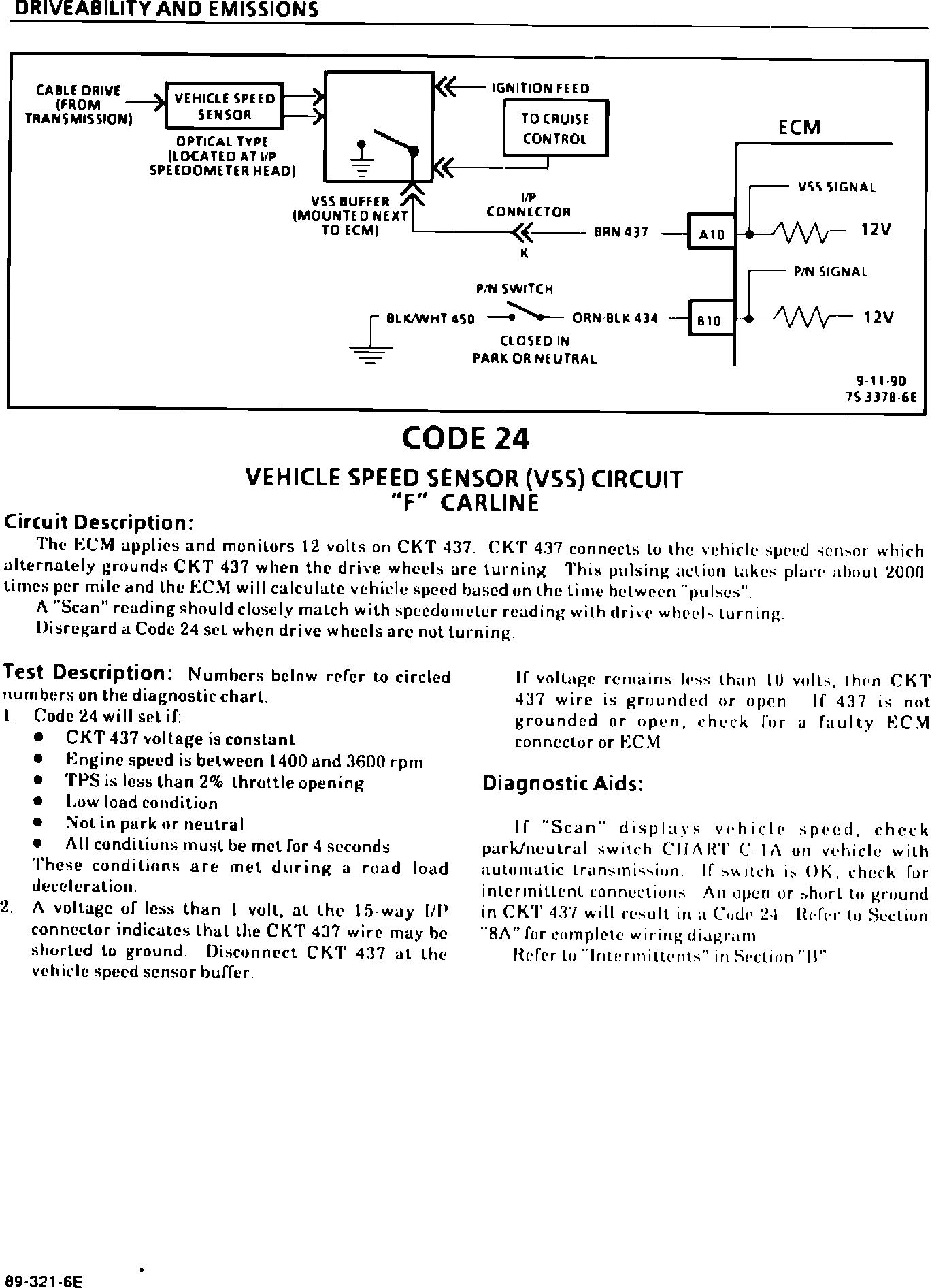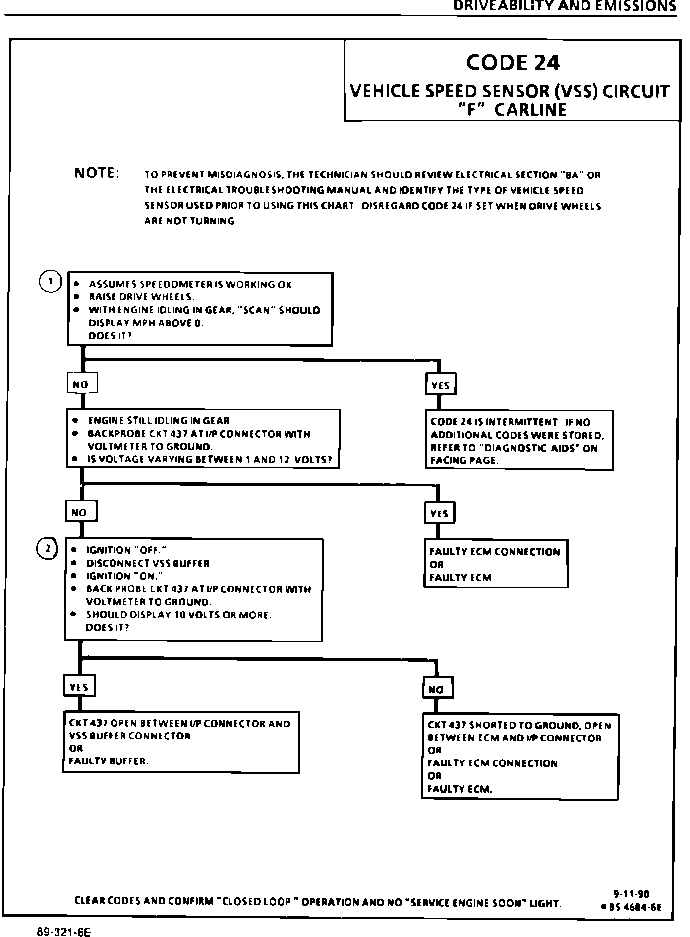 The information in this bulletin serves to replace the Code 24 Diagnostic Charts and Facing Pages found in DRIVEABILITY AND EMISSIONS (SECTION 6E2 and 6E3) of the 1989 Chevrolet "F" Carline Service Manuals.