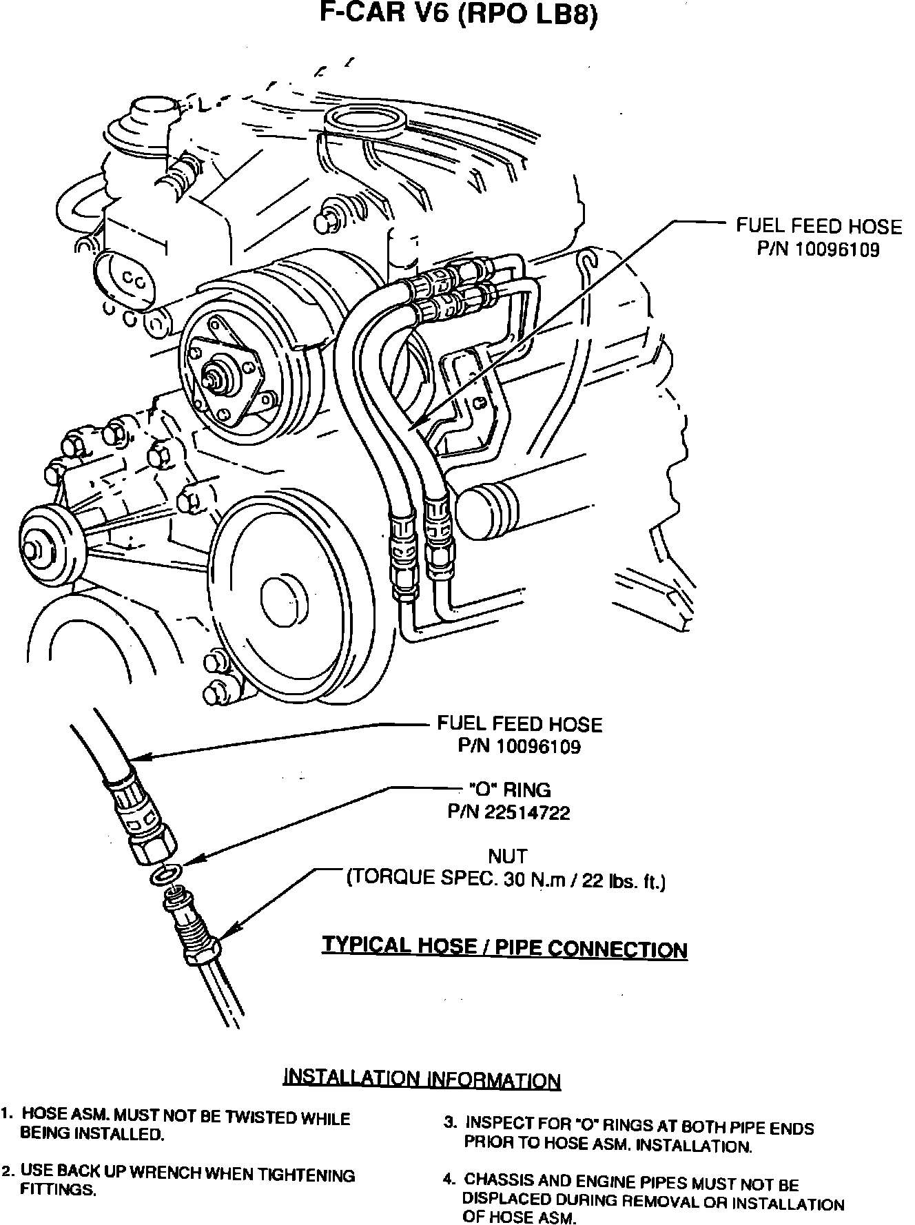 7. Torque fittings to 30 N-m (22 lb.ft.) utilizing backup wrench.