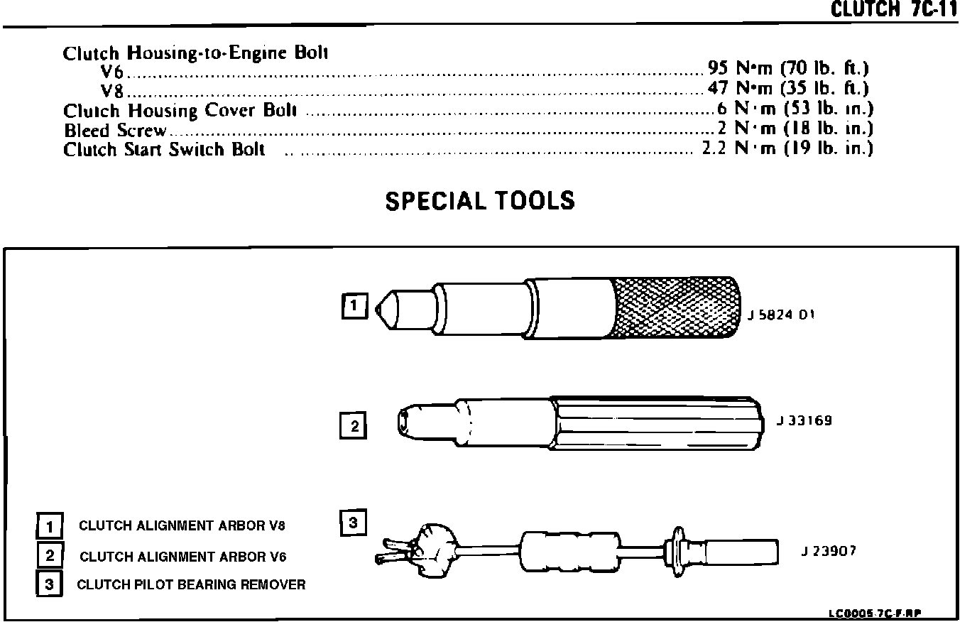 The updated Clutch Housing-to-Engine Fastener Torques (Section 7C) were changed to the following: