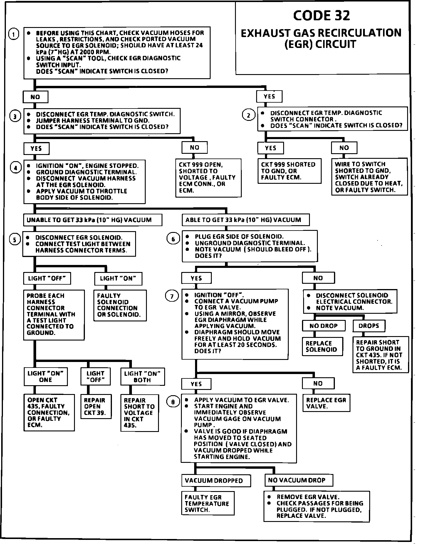 Code 32 means that the EGR diagnostic switch was closed during start-up or that the switch was not detected closed under the following conditions: