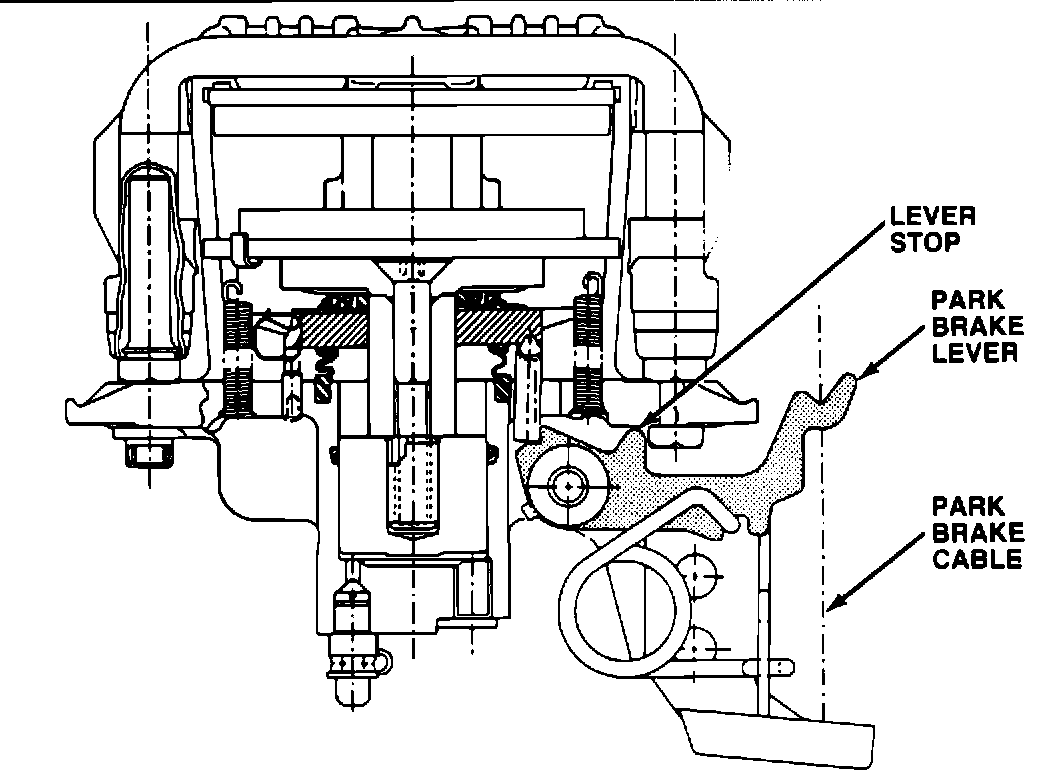 14. Adjust the park brake cable at the equalizer until both of the P/B levers just start to move off the caliper stops (See Figure # 4).