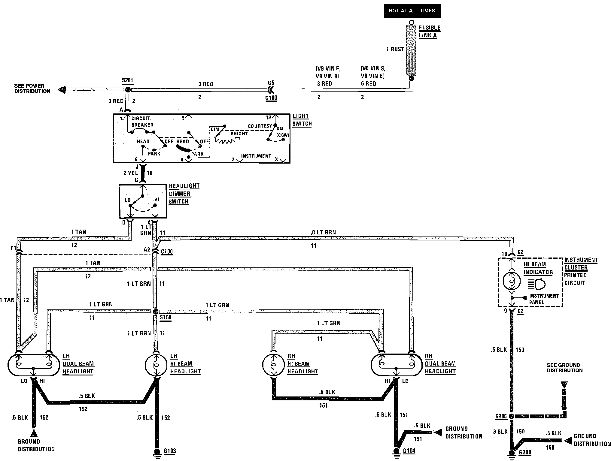 Headlamps Wiring Circuit (Less Fog Lamps):