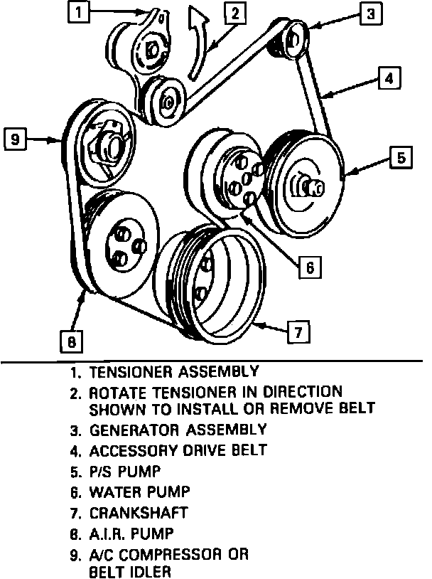 Fig. 17 Serpentine Drive Belt Routing. 1989: