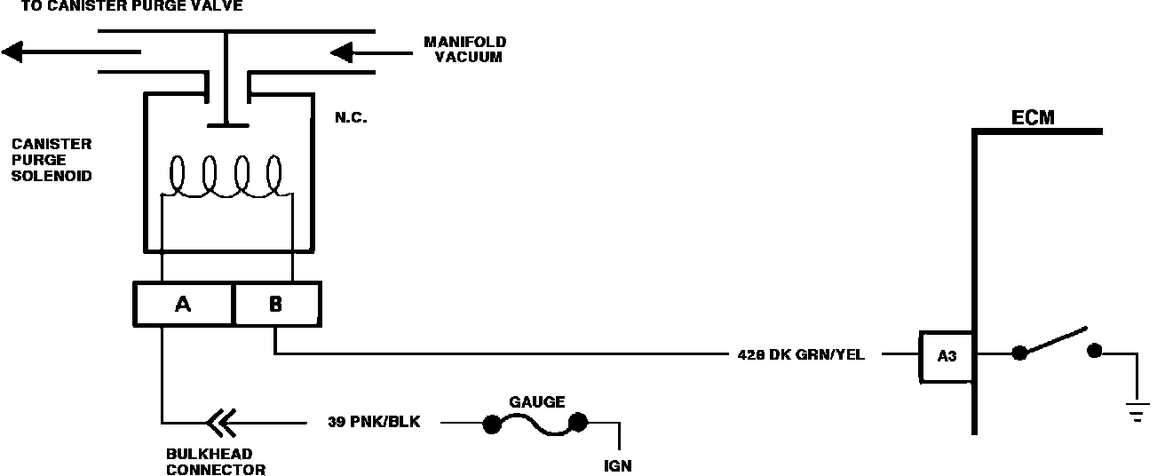 2. Grounding the diagnostic test terminal will energize the canister purge solenoid and permit vacuum to pass.