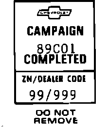 Each vehicle corrected in accordance with the instructions outlined in this Product Campaign Bulletin will require a "Campaign Identification Label." Each label provides a space to include the five (5) digit dealer code of the dealer performing the campaign service. This information may be inserted with a typewriter or a ball point pen.