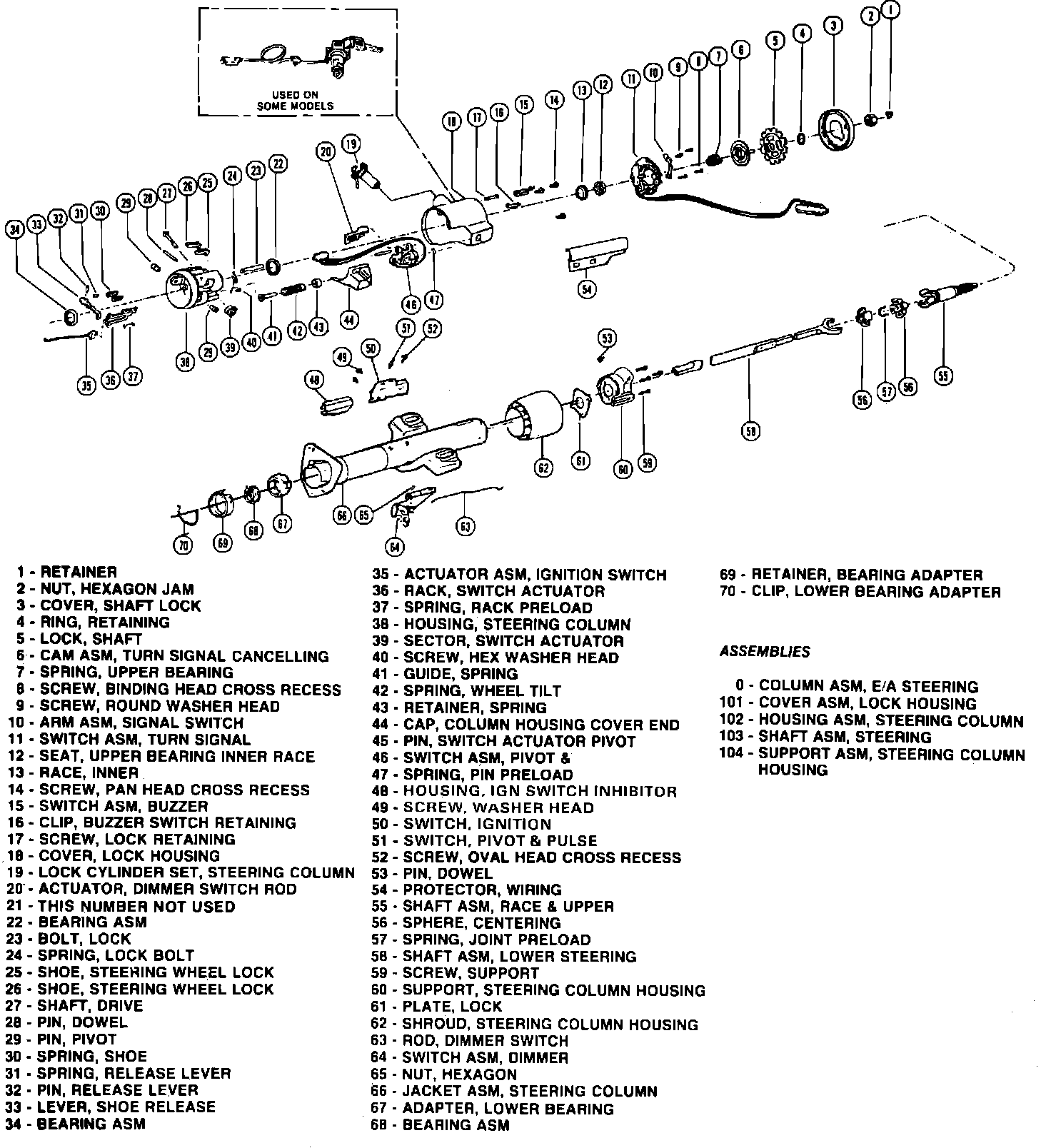 SHAFT ASSEMBLY, COLUMN HOUSING SUPPORT SHIFT TUBE ASSEMBLY, IGNITION SWITCH, DIMMER SWITCH & LOWER BEARING ASSEMBLY