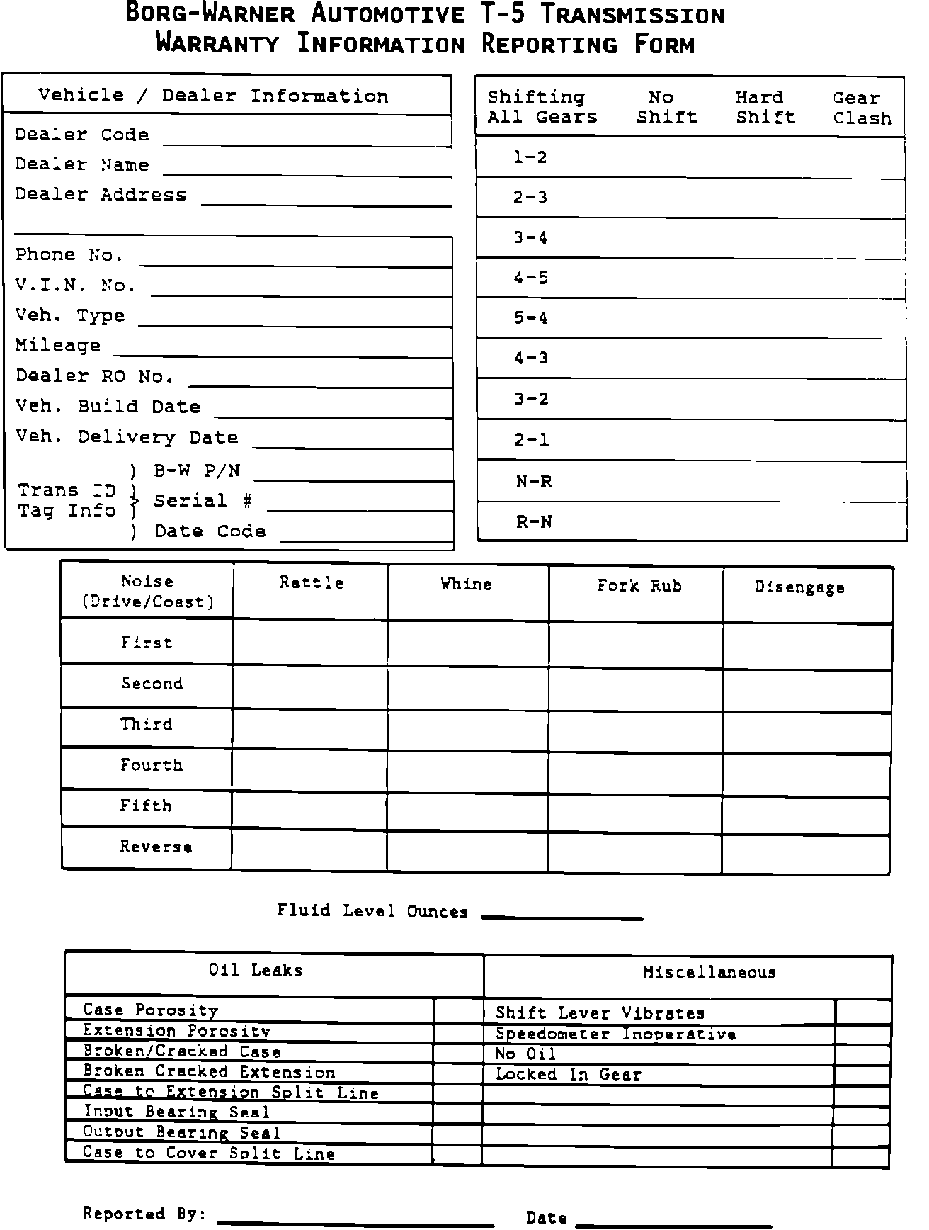 After obtaining the necessary information (Reporting Form) Borg Warner will arrange to ship an exchange unit to your dealership and will provide your dealership with an authorization number. This number must be written on the transmission case cover, before returning the unit to Borg-Warner.