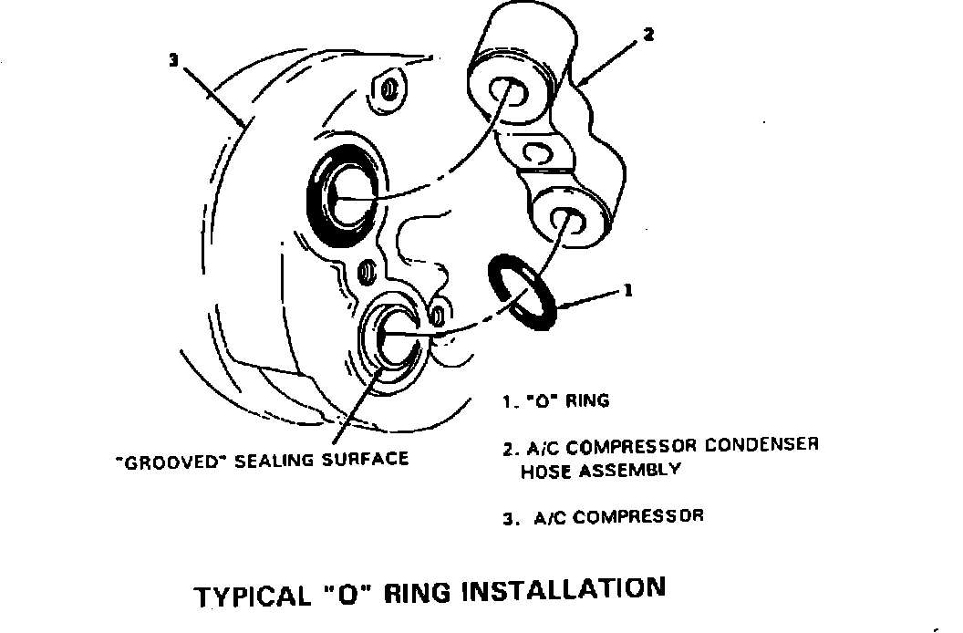 There has been a redesign of the GM Harrison A/C compressor rear head and the mating face of the attaching hose assembly. The redesign eliminates the two "O" ring seals from the compressor, replacing them with two "sealing washers added to the suctional discharge hose set". Each sealing washer consists of a metal washer with an integral molded rubber seal. (Refer to Illustrations).