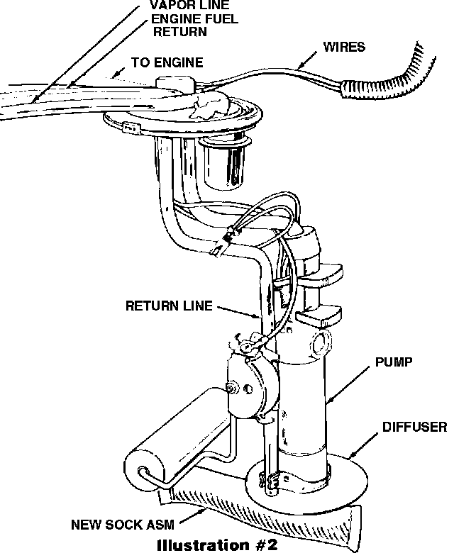 4. Remove fuel tank pump and sender assembly following applicable shop manual procedure.