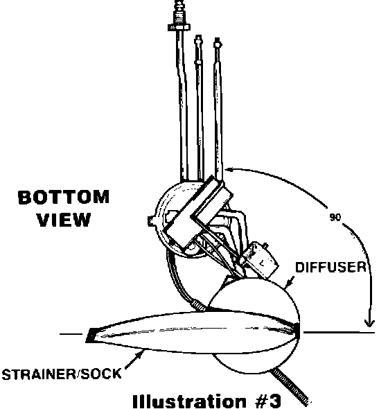 6. Install diffuser disc over pump inlet, position and install new strainer/sock as shown in illustration 2, and illustration 3.