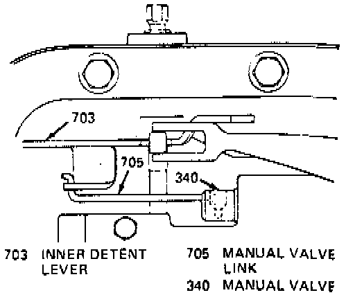 9. Install valve body assembly. Connect manual valve link to the inside detent lever, Fig. 12.