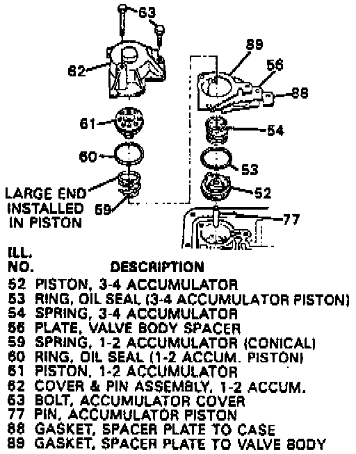 Fig. 11, 1-2 & 3-4 accumulator assembly. 1987-90 Models: