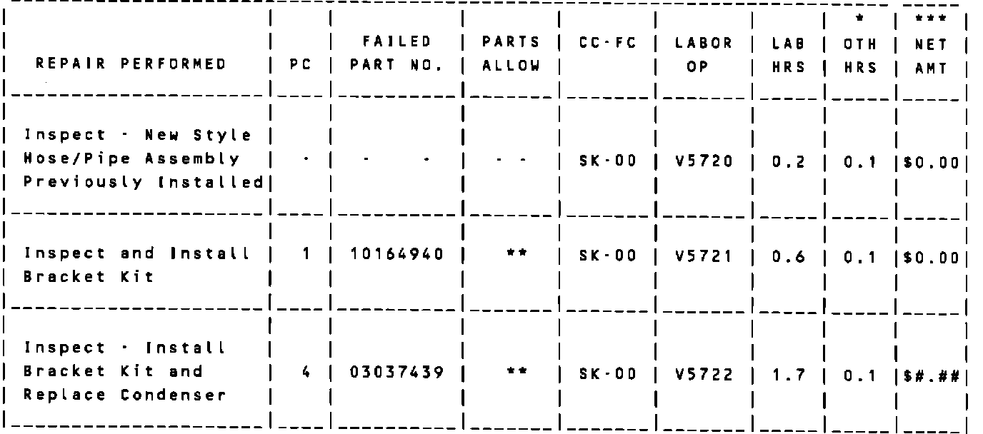 *** The amount identified in the "Net Amount column should represent the current cost plus 30% for Refrigerant used in conjunction with labor operation V5722.