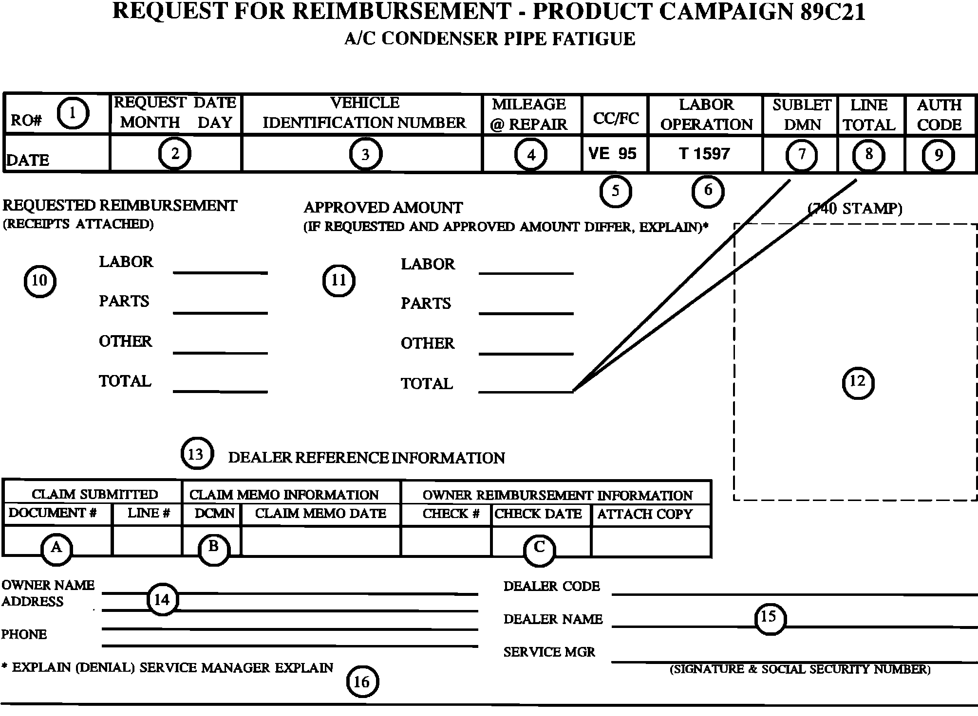 Customer requests for reimbursement of prior repairs to correct a condenser inlet pipe fatigue fracture are to be submitted according to the forms and instructions included in this bulletin (Additional copies to be reproduced locally) within 3 months (90 days) of the date of their owner letter. Owners must submit original documentation that reasonably confirms the amount of unreimbursed repair expenses, a description of the repair, the date of the repair, and the person or entity performing the repair to receive reimbursement.