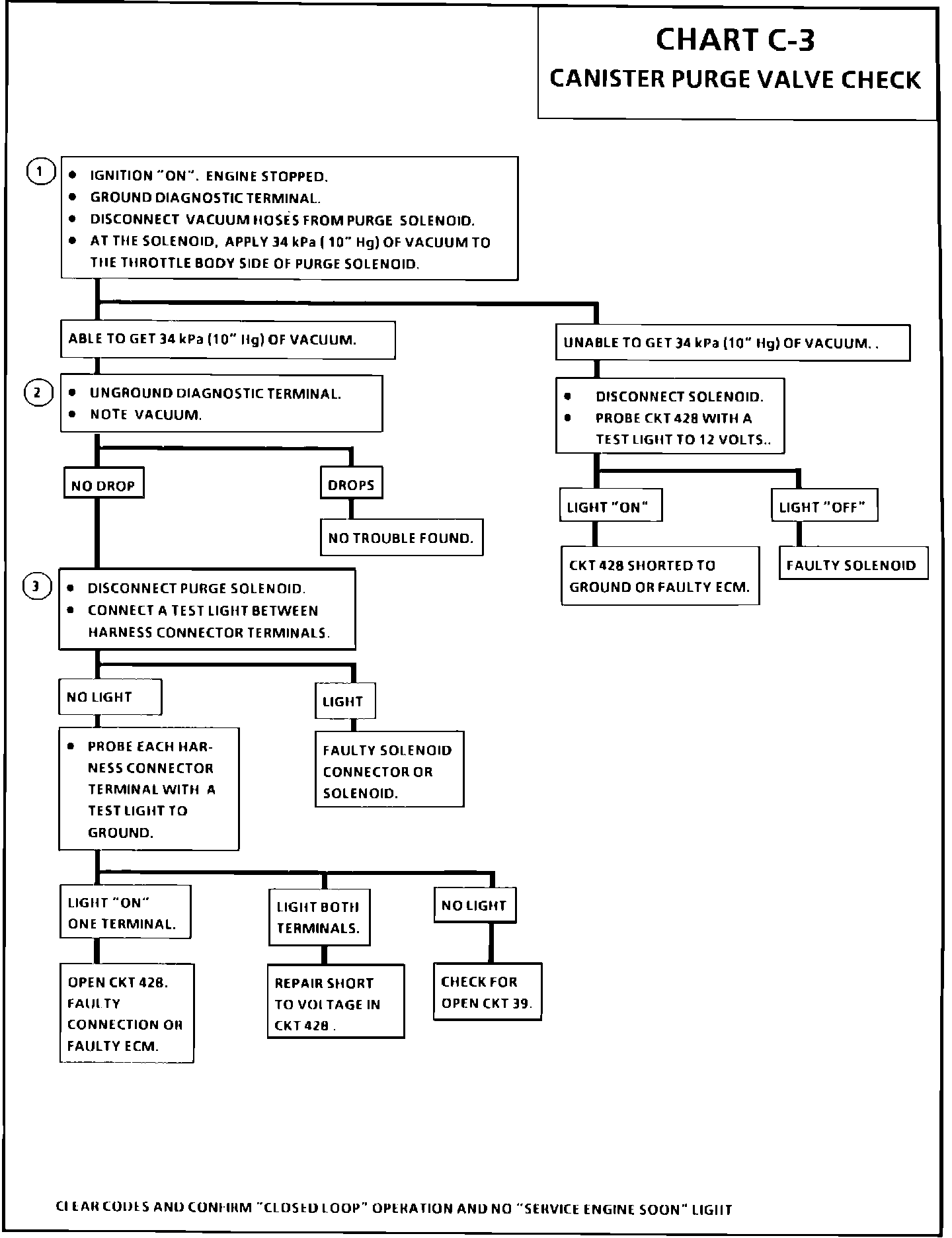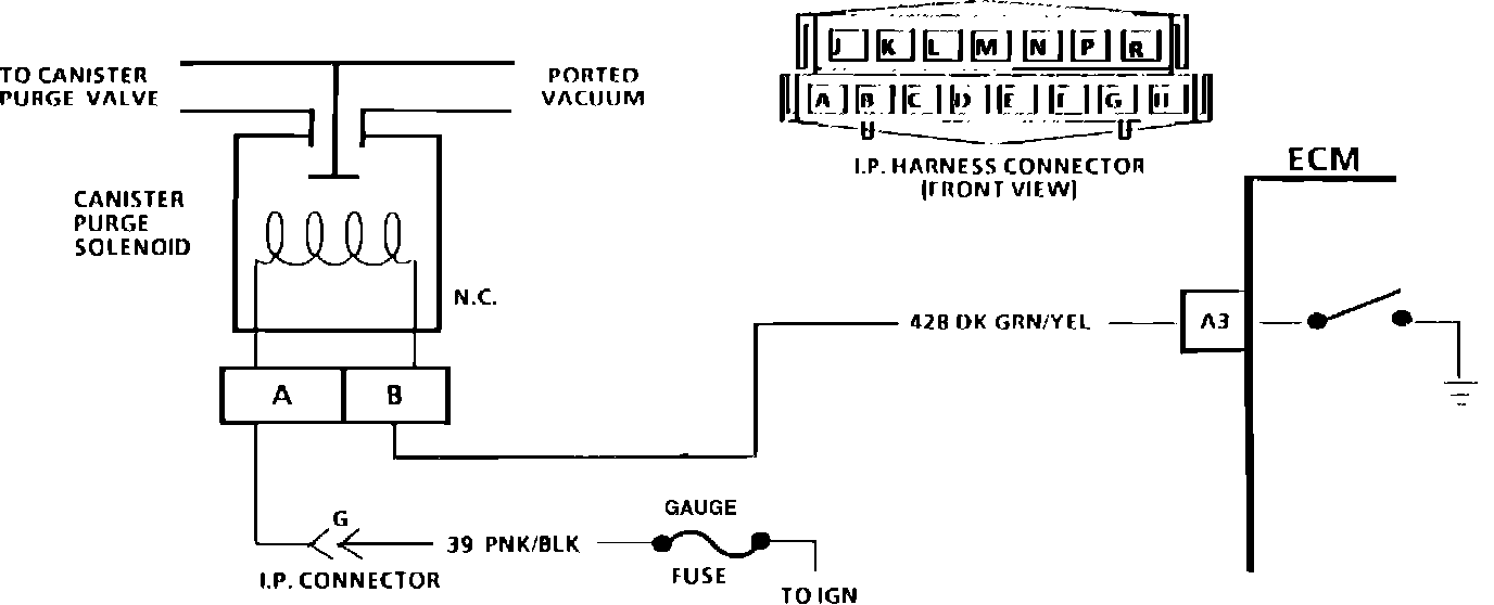 3. This checks for a complete circuit. Normally there is ignition voltage on circuit 39, and the ECM provides the ground path on circuit 428. A shorted purge solenoid could cause an open circuit in the ECM.
