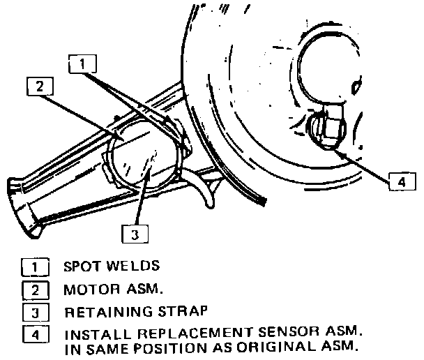 3. Drill out the two spot welds initially with a 1.6 mm (1 1/16 inch) drill bit. Enlarge the hole as required to remove the retaining strap. DO NOT damage the snorkel tube.