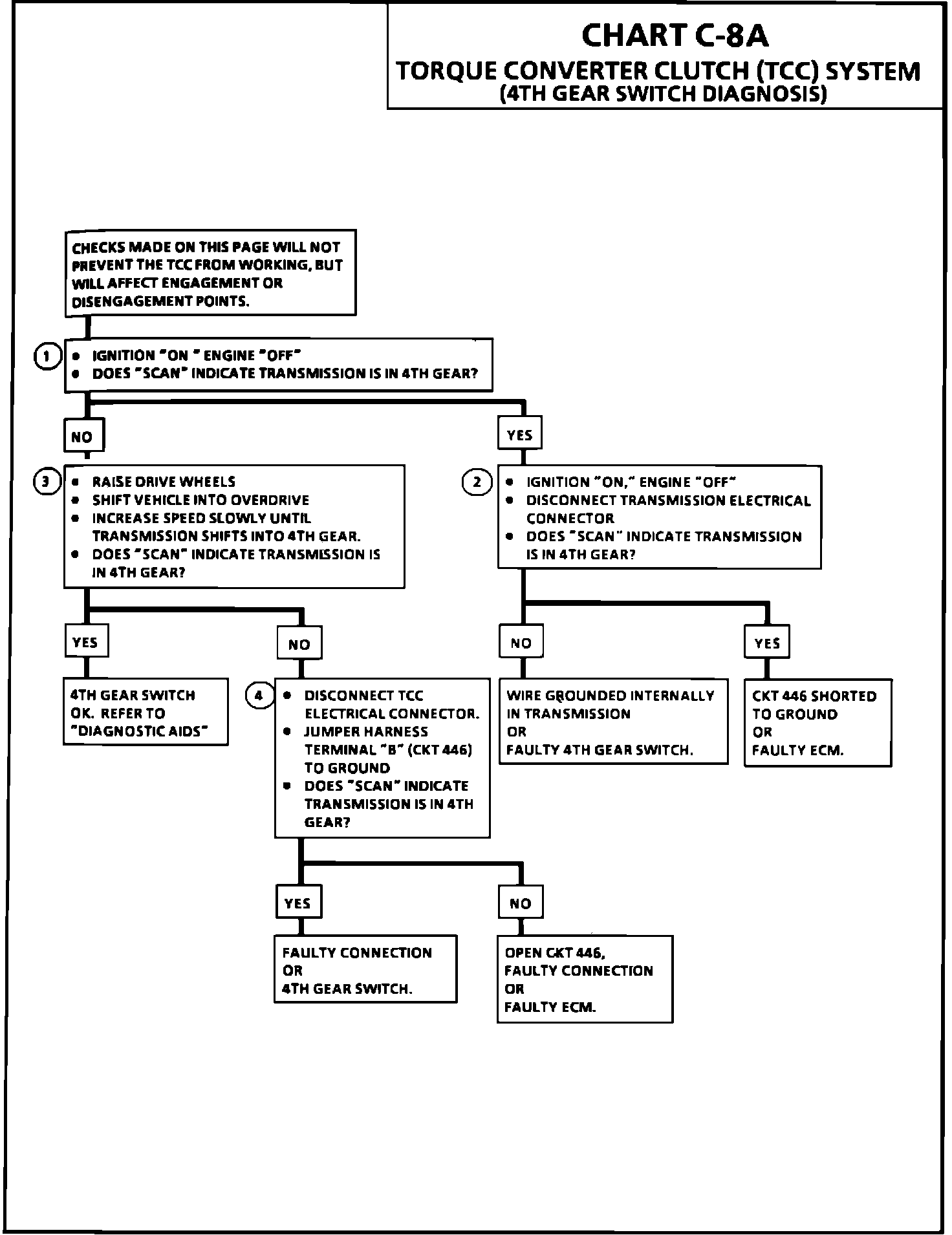 1. Unless the switch or circuit 446 is open, the "Scan" tool should display "NO," which indicates that the transmission is not in fourth gear. The fourth gear switch should only be open in fourth gear.