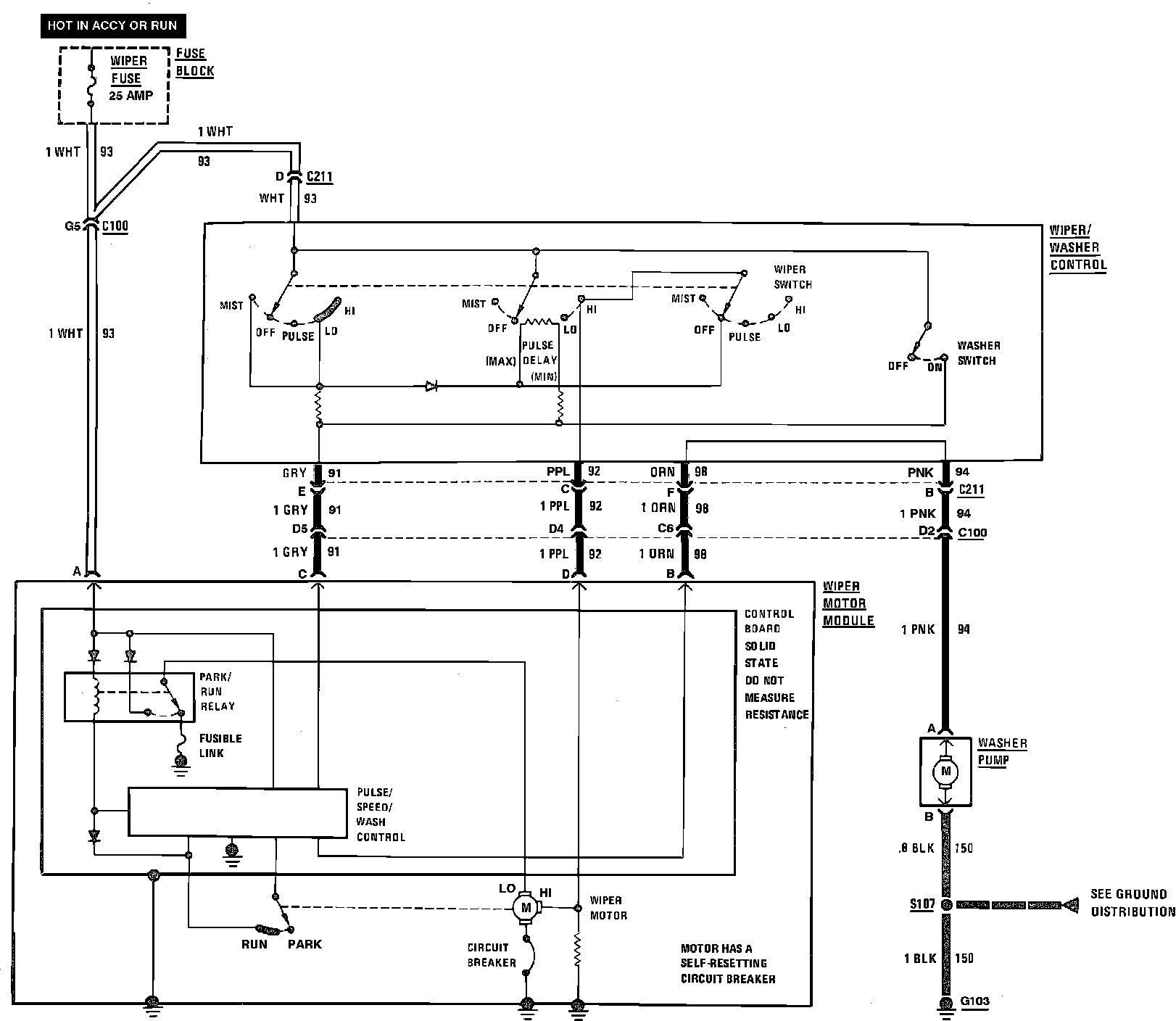Windshield Wiper/Washer Wiring Circuit (W/Interval Wiper Exc. RS & Z24):