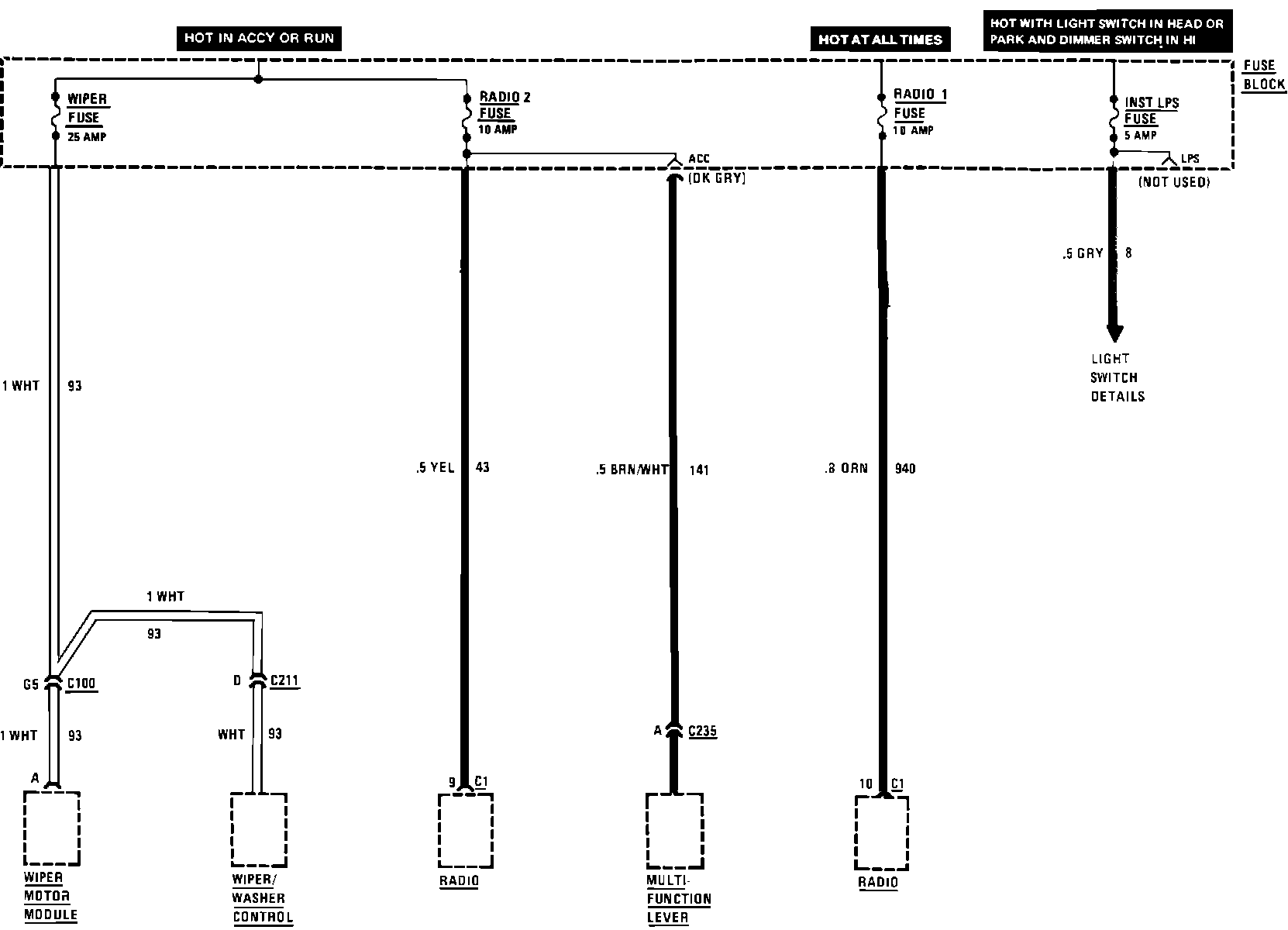 Fuse Block Details (Inst. LPS Fuse, Radio 1 Fuse, Radio 2 Fuse & Wiper Fuse) W/Standard Cluster: