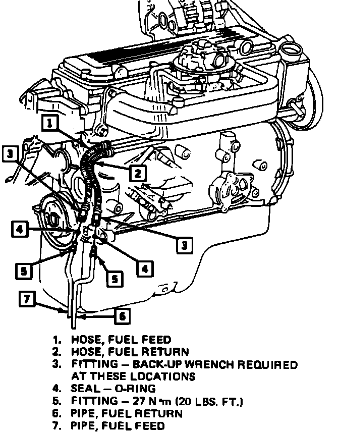 Screw fittings on the fuel line pipes utilize O-rings for the fuel feed and return pipes. Two sizes are used and are not interchangeable.