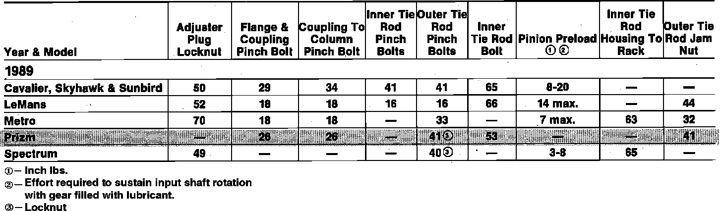 Tightening Specifications: