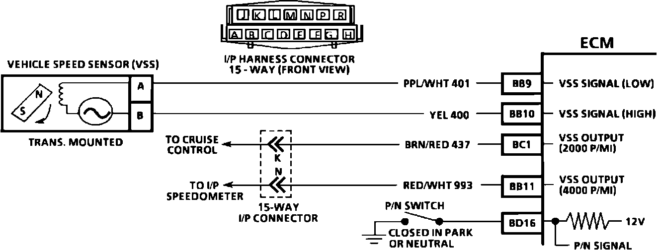 ^ "Scan" should indicate a vehicle speed whenever the drive wheels are turning greater than 3 mph. A problem in CKT 437 or 993 will not affect the VSS input or the readings on a "Scan".