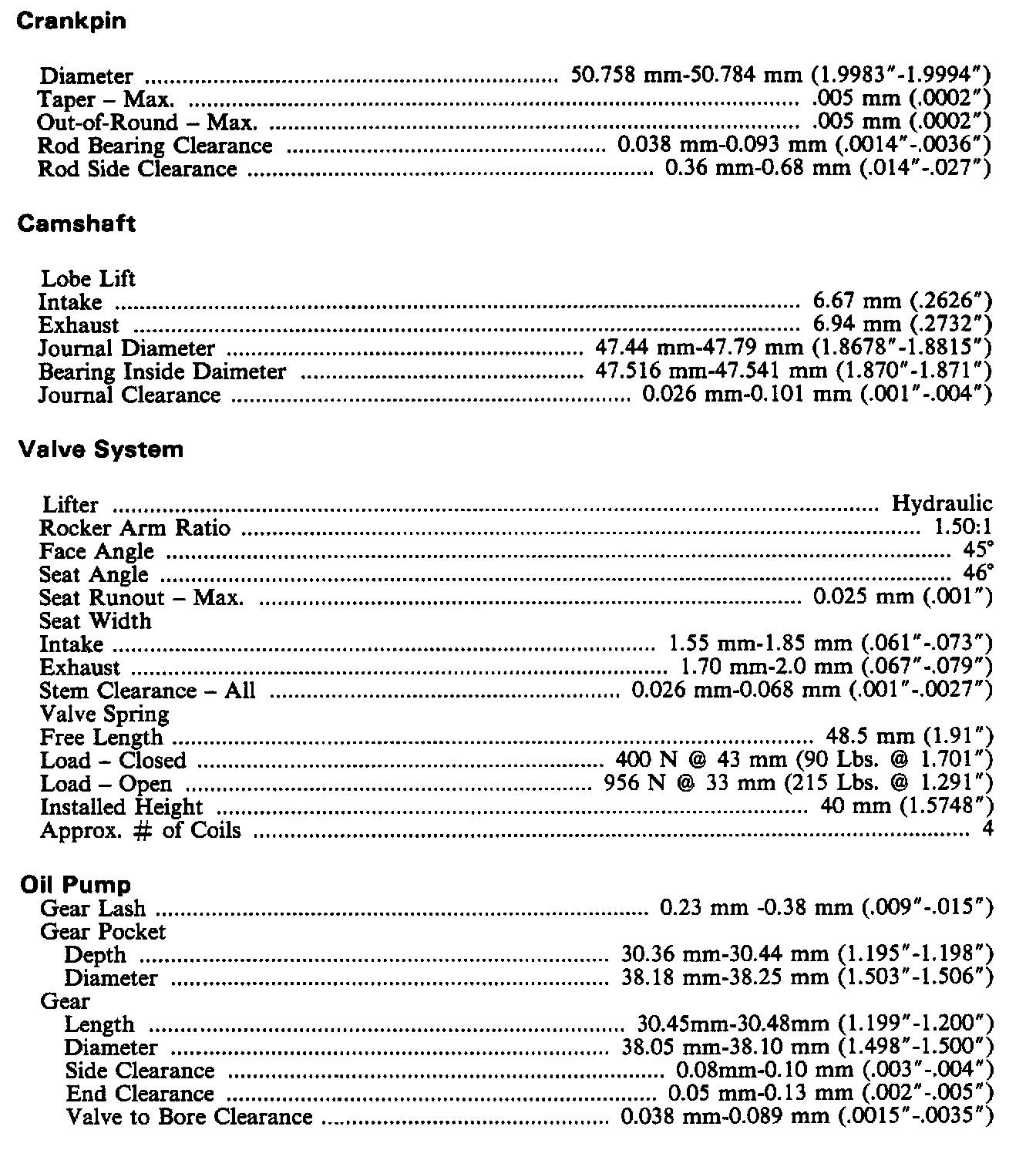 Continued Engine Specifications: