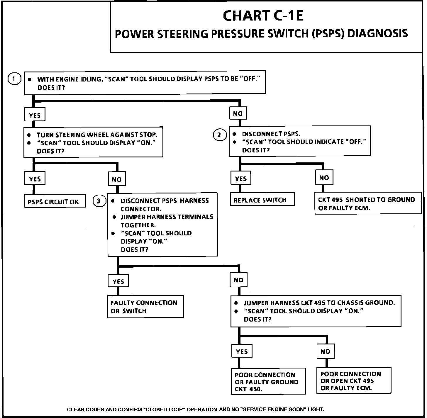 ^ A pressure switch that will not close, or an open CKT 495 or 450, may cause the engine to stop when power steering loads are high.