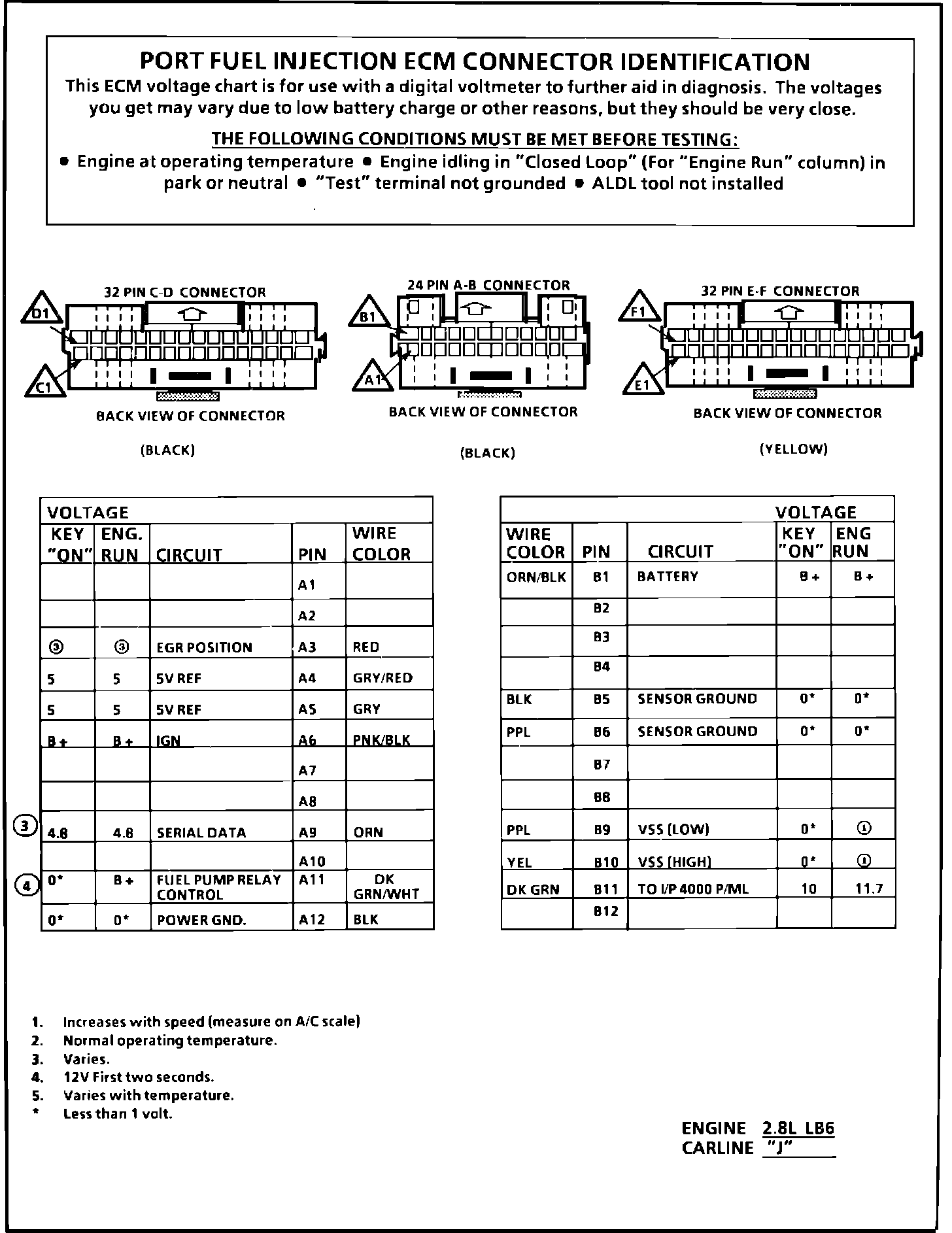 ECM Connector Terminal Identification (Part 1 Of 2):