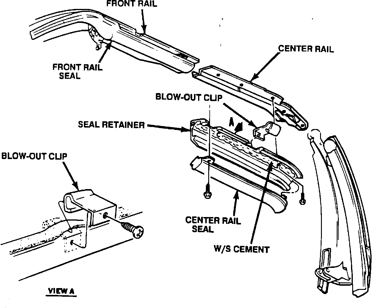 Plastic blow out clip - part number 12504985 Center rail seal retainer - part numbers 20498176 RH, 20498177 LH