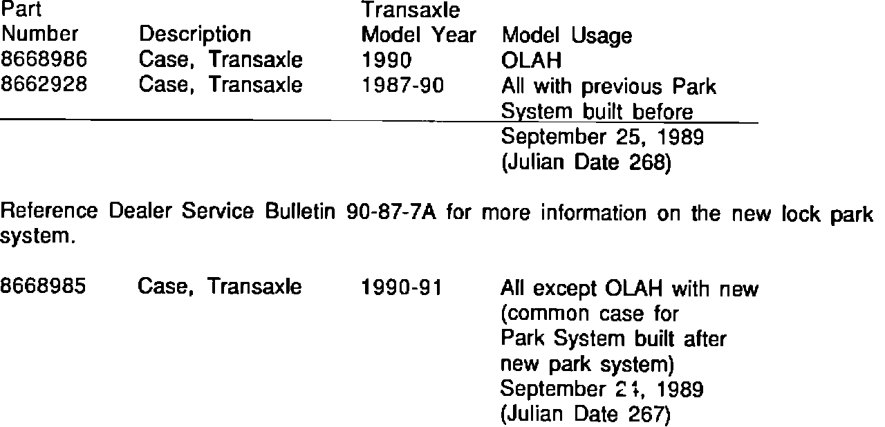 Model and Year: 1987-90 CELEBRITY 1990-91 LUMINA WITH 4T60 AUTOMATIC TRANSMISSION