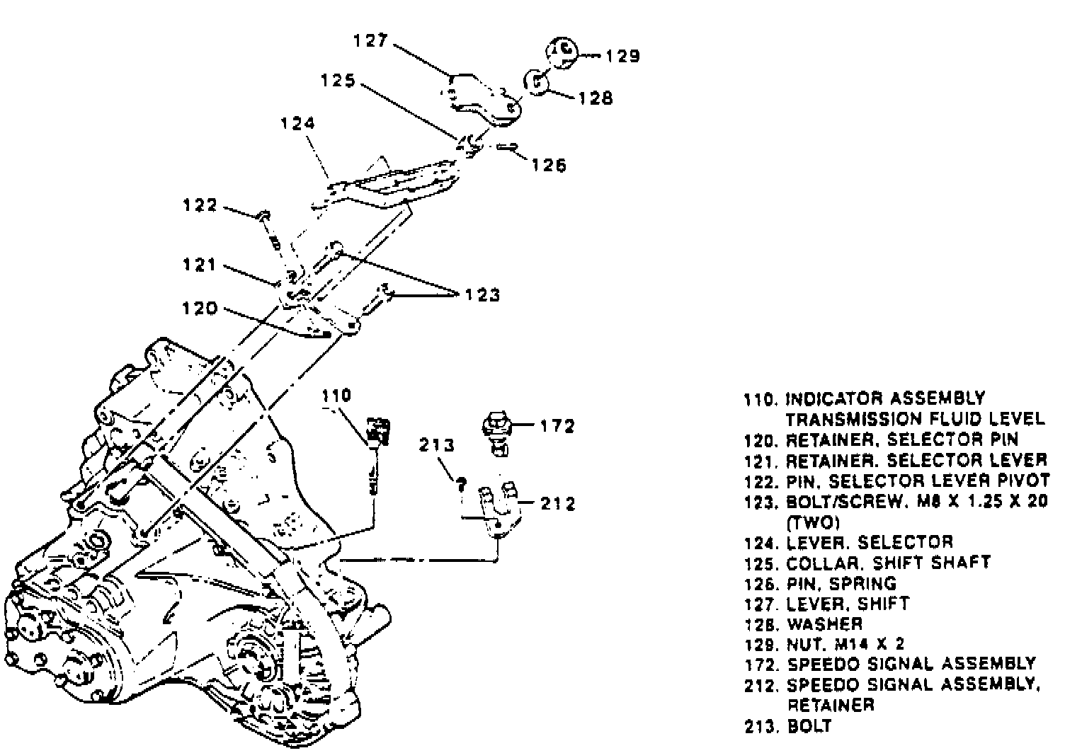 f. Remove electronic speedometer signal assembly (172), retainer (212) and attaching bolt (213).