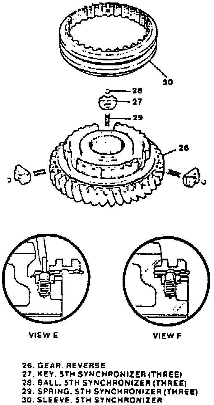 Refer to Figs. 19 through 21 for synchronizer assemblies.