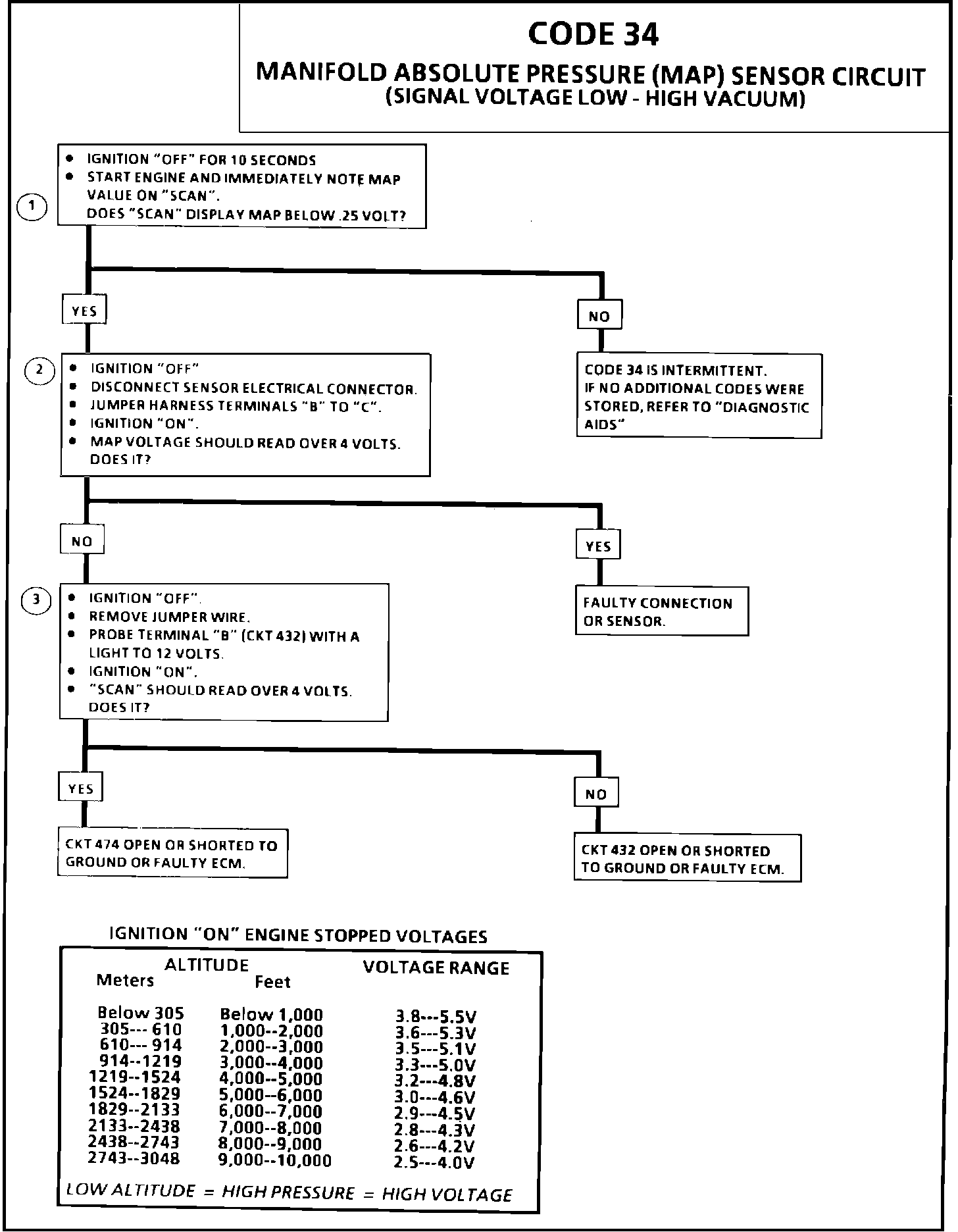 An intermittent open in circuit 432 or 474 will result in a Code 34.