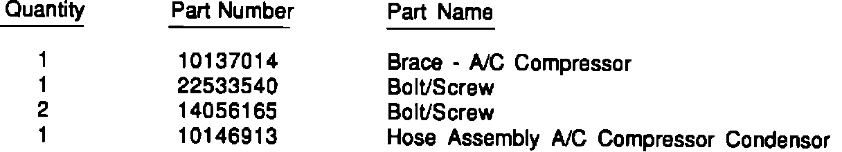 The 1990 early production vehicles with the 3.1L engine should have the compressor brace but not the new muffled A/C hose assembly. Breakpoints are not available at this time.