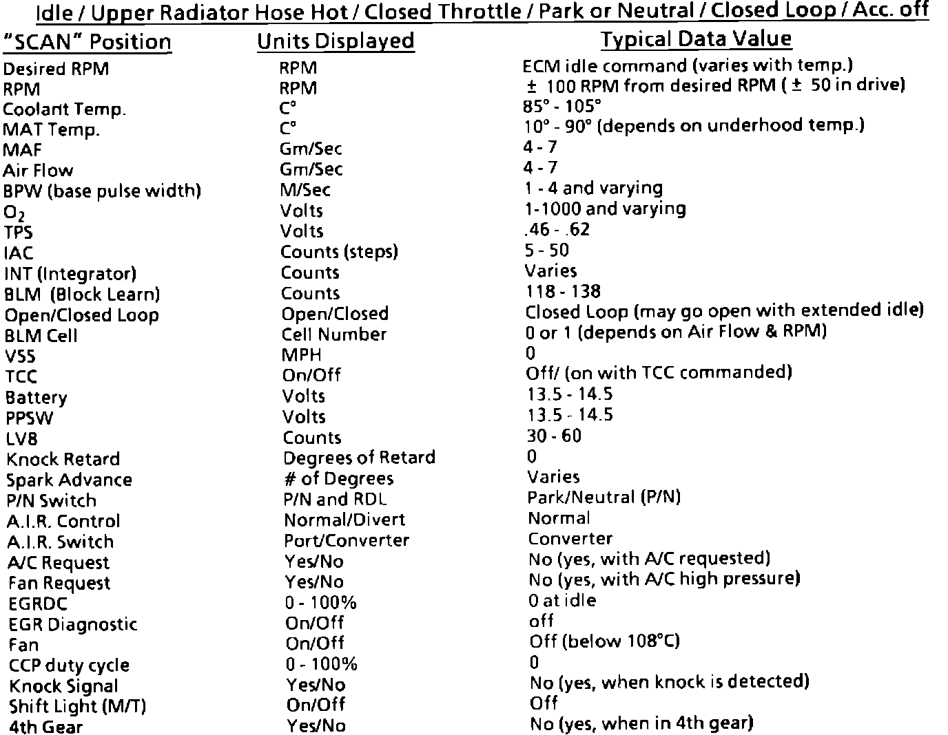 Typical Scan Values: