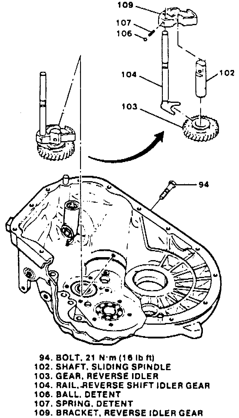 2. Remove shift rail (104), gear (103), shaft (102) and bracket (109).