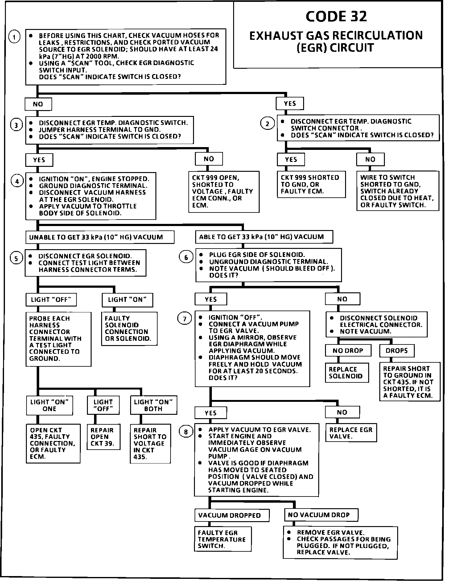 Code 32 means that the EGR diagnostic switch was closed during start-up or that the switch was not detected closed under the following conditions:
