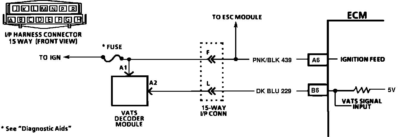 The VATS system is designed to disable vehicle operation if the incorrect key or starting procedure is used. The VATS decoder module sends a signal to the ECM if the correct key is being used. If the proper signal does not reach the ECM on CKT 229, the ECM will not pulse the injectors "ON" and thus not allow the vehicle to be started.