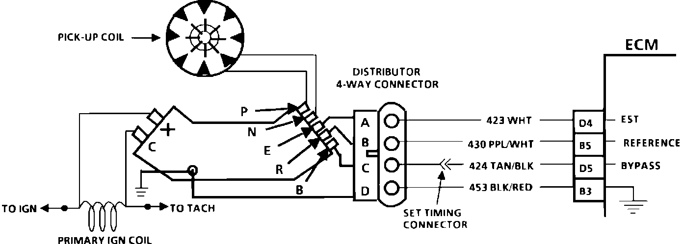 1A. If spark occurs with EST connector disconnected, pick-up coil output is too low for EST operation.