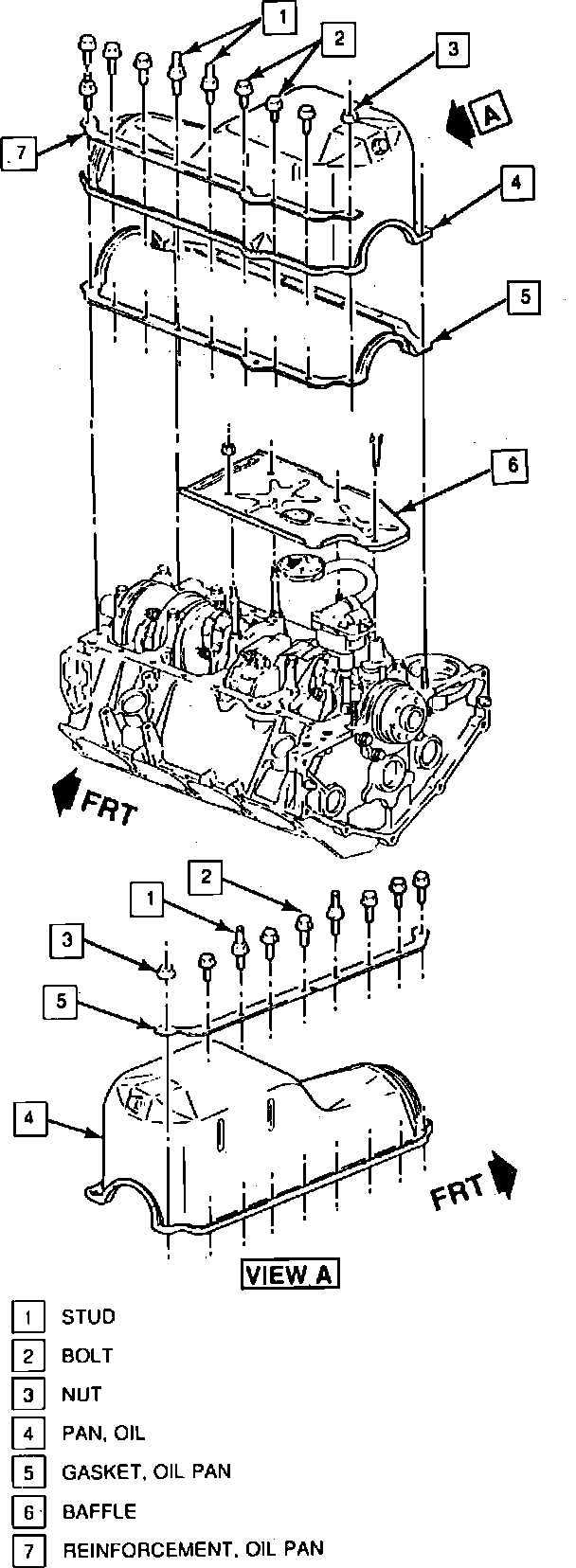 10. Reverse procedure to install. Torque oil pan retaining bolts to specifications.