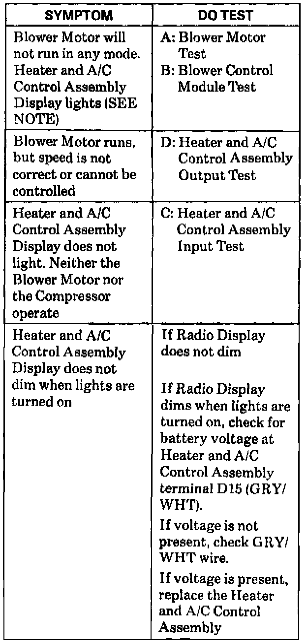 Do the test listed for your symptom in the Symptom Table.