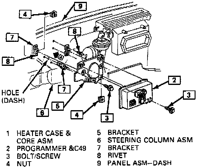 1. Climate control programmer. Tighten screw to 1.9 Nm (17 ft lb).