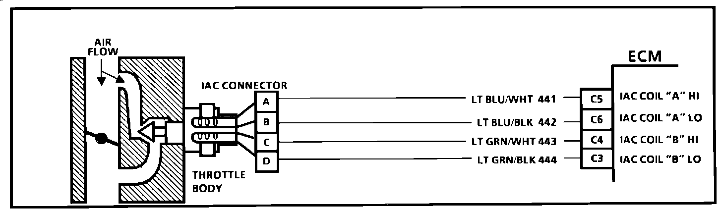 This is done by sending enough counts to seat the valve. The fully seated valve is the ECM reference zero. A given number of counts are then issued to open the valve, and normal ECM control of IAC will begin from this point. The number of counts are then calculated by the ECM. This is how the ECM knows what the motor position is for a given idle speed. The ECM uses the following information to control idle speed.