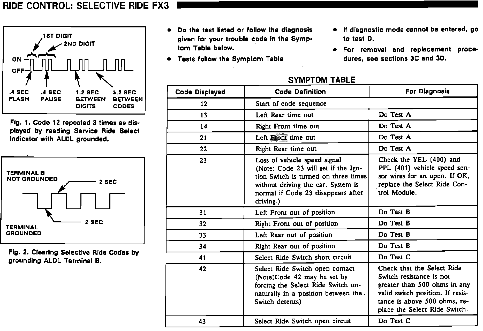 The 1989 Corvette Service Manual Section 8A, page 43-3 Contains an incorrect Code Definition in the Symptom Table.