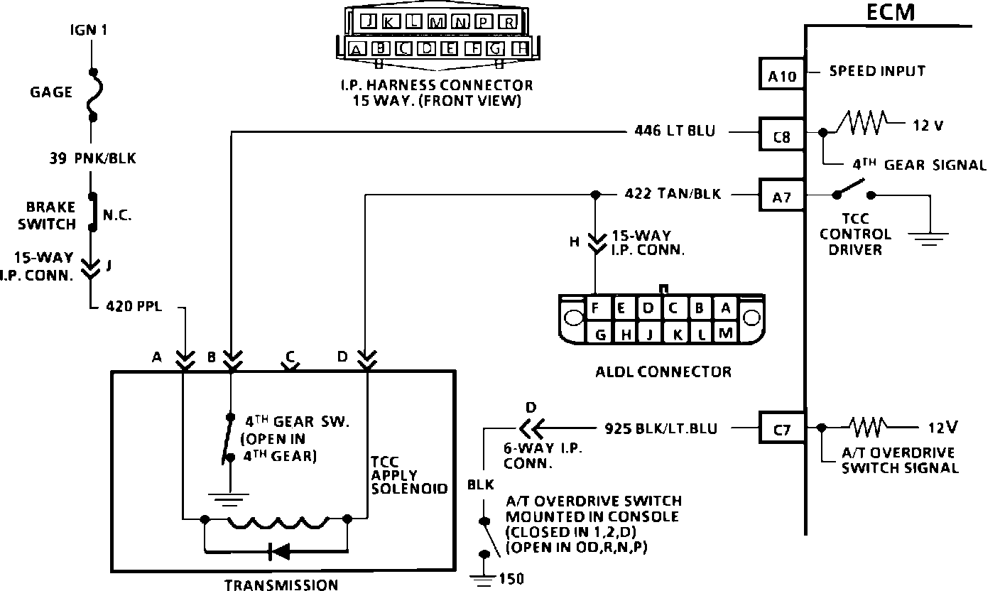 A fourth gear switch (mounted in the transmission) opens when the transmission shifts into 4th gear, and this switch is used by the ECM to modify TCC lock and unlock points, when in a 4-3 downshift maneuver.